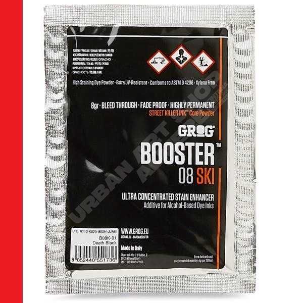 Grog Booster 08 SKI Splatter Red is een krachtige stain enhancer die elke inkt omtovert tot een high-performance formule met maximale hechting en duurzaamheid. Dit 8 gram zakje zit vol pure kleurkracht en chemische energie. Voeg het toe aan je favoriete inkt en laat het een nacht inwerken: de chemische reactie verdiept de kleur, versterkt de stain en maakt je tags bijna onuitwisbaar.