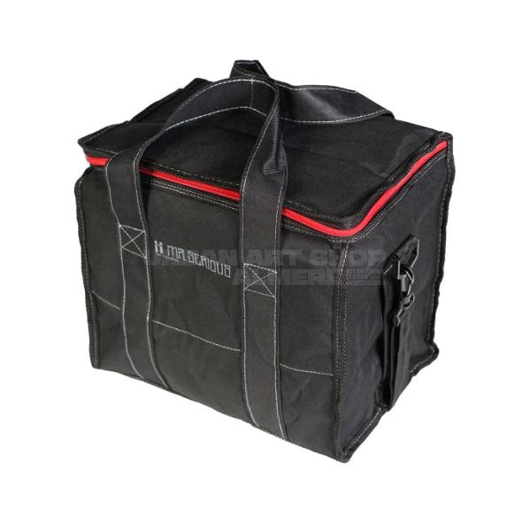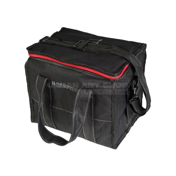 Professionele kwaliteit Mr. Serious schoudertas voor het vervoeren van 12 spuitbussen.