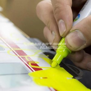 Werk je ontwerp uit met jouw favoriete markers en paint tools. Gebruik bijvoorbeeld Molotow ONE4ALL twinmarkers voor strakke lijnen en felle kleurvlakken, of kies voor Posca PC-3M markers als je houdt van een matte en dekkende afwerking. Ook geschikt voor gebruik met MTN Water Based Markers en andere street art supplies.