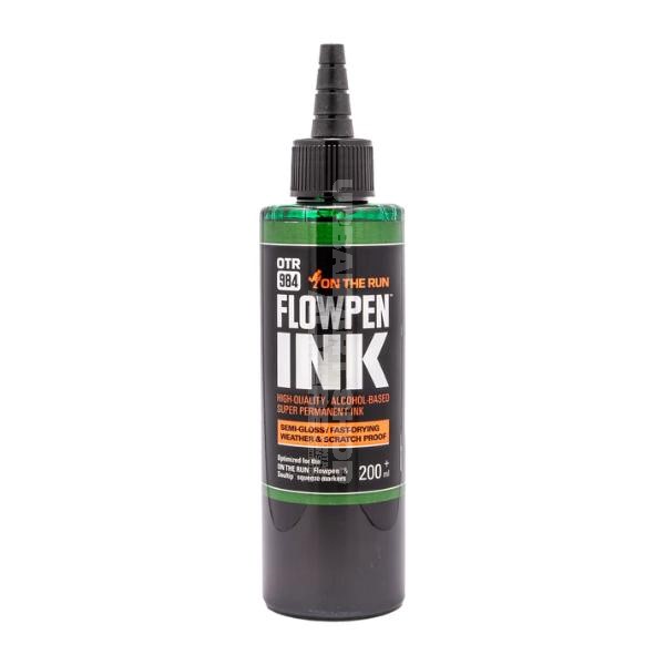 OTR.984 Flowpen Ink Grass Green Refill 200 ml is een hoogwaardige, alcoholbasis inkt voor het navullen van je favoriete On The Run markers. Grass Green levert diepe, levendige kleur met een gladde flow en sterke dekking op bijna elk oppervlak. Ontwikkeld voor writers die hun markers vol willen houden met inkt van professionele kwaliteit.