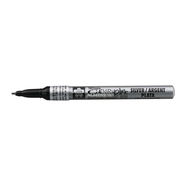 Sakura Pen Touch Kalligrafie Stift zilver 1.8 mm is een precisie marker met een stevige kalligrafiepunt, ideaal voor sierlijke letters, outlines en creatieve toepassingen. De inkt is sterk gepigmenteerd, dekkend en permanent op de meeste oppervlakken. Dankzij de fijne 1.8 mm beitelpunt schrijf je soepel en gecontroleerd, met een strak, egaal resultaat.